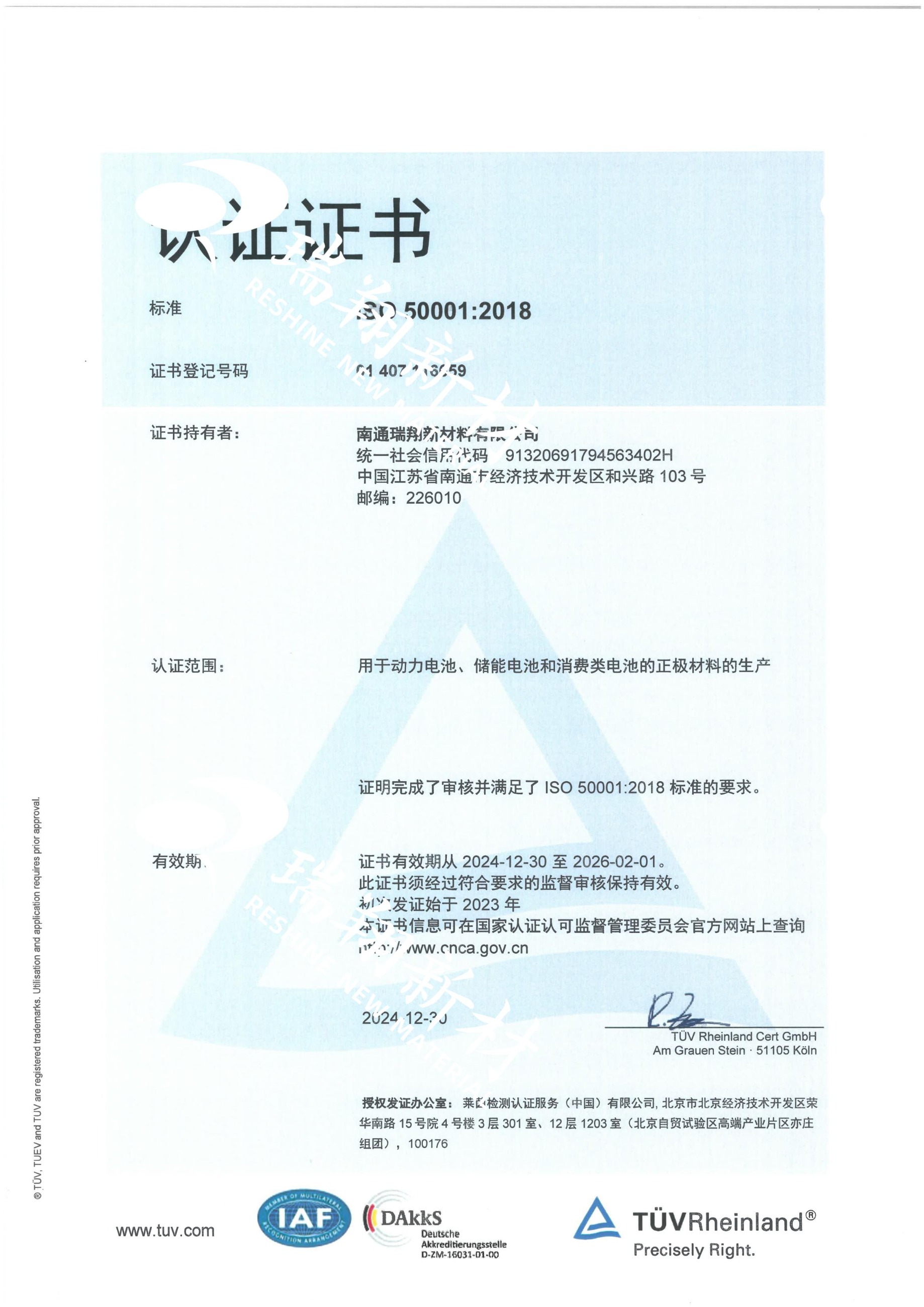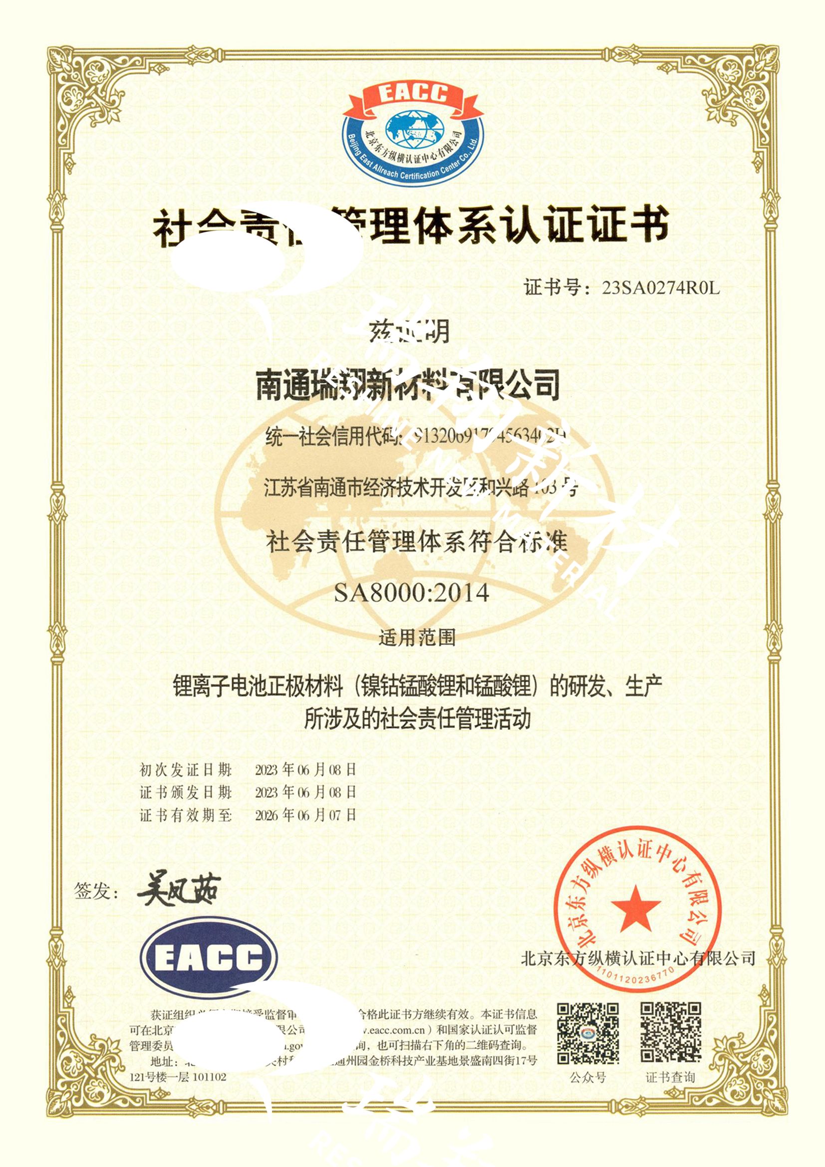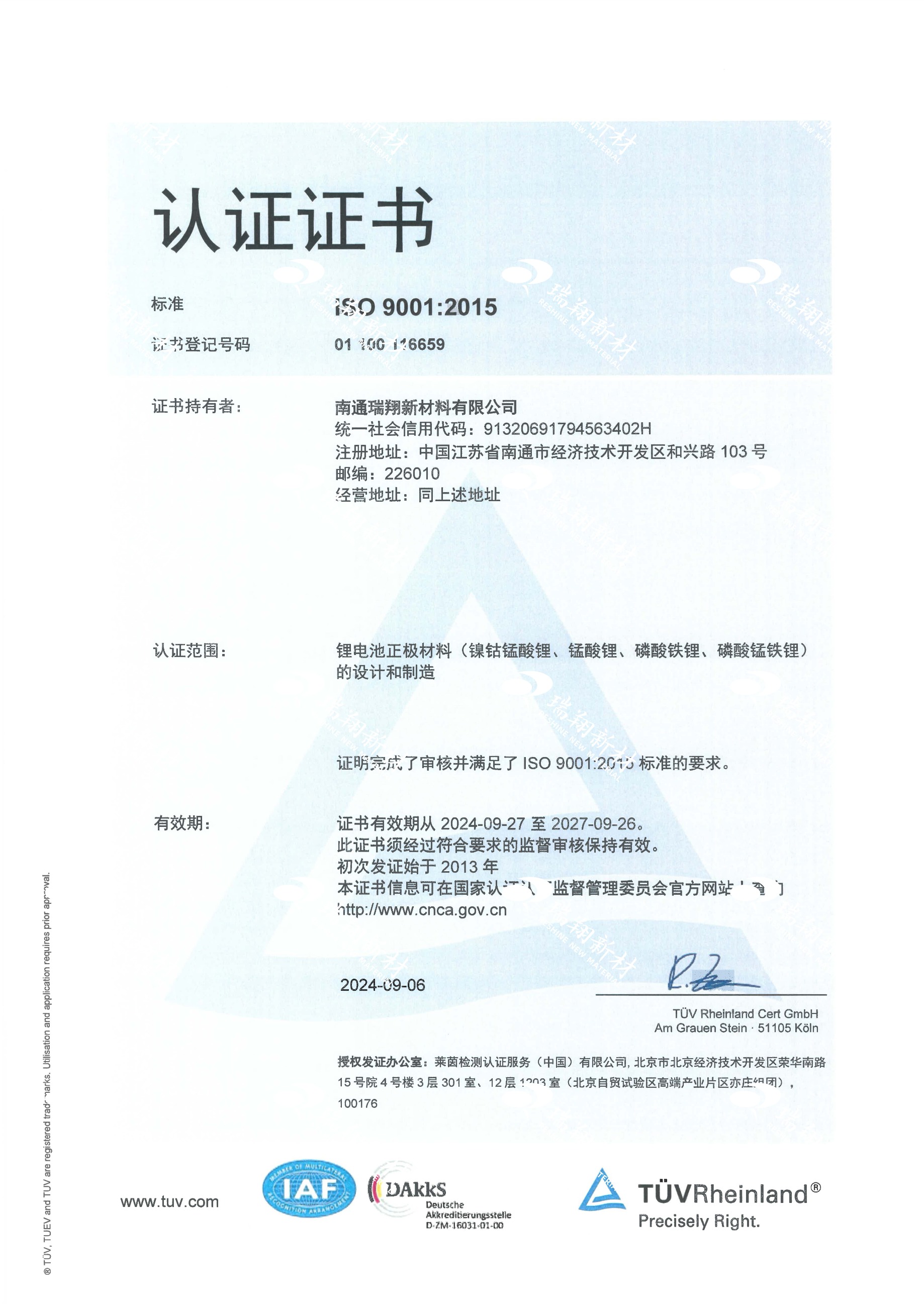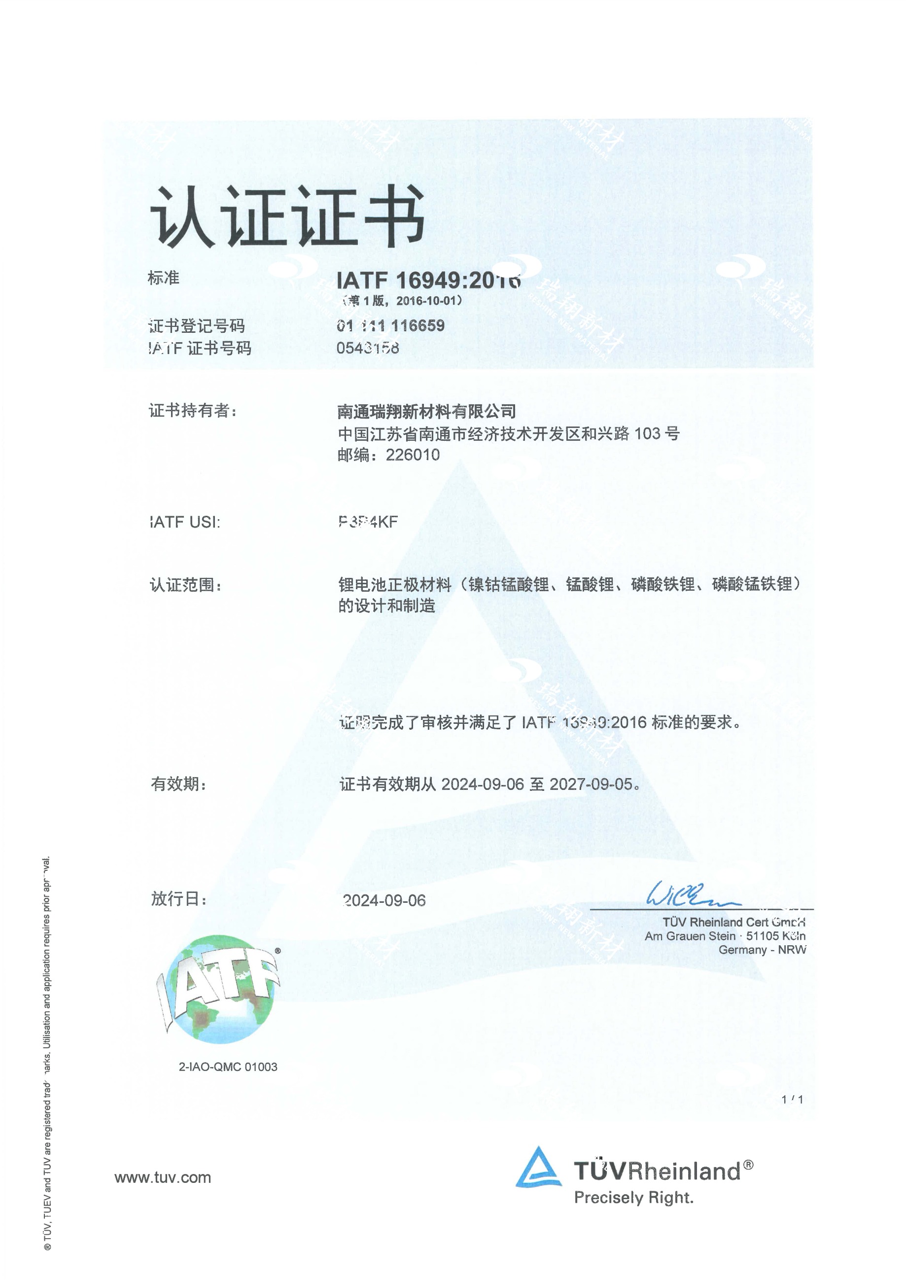 南通瑞翔新材料有限公司是一家專業從事新能源材料研發、制造、銷售的高新技術企業,注冊資本6.82億元,是世界500強企業甘肅金川集團的控股子公司。公司主營產品為三元材料、錳酸鋰、磷酸鐵鋰、磷酸錳鐵鋰及鈉電等正極材料,廣泛應用于動力電池、儲能電池、消費電池三大領域。公司構建了多元化產品矩陣,并在高功率、高電壓動力電池正極材料制造方面建立了優勢。公司產品憑借著高安全性能、高能量密度、低成本優勢深受客戶與市場好評,進入了國際主流車企供應鏈。
