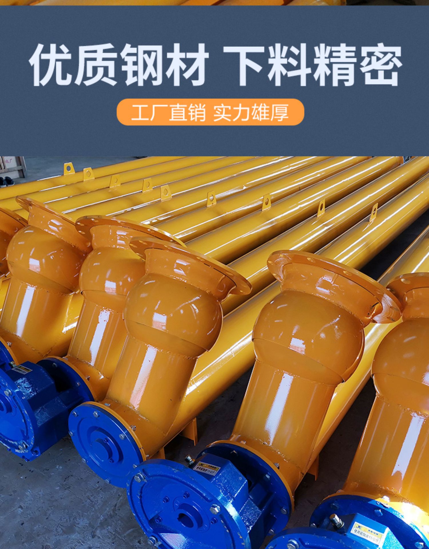 Product introduction螺旋輸送機是一種利用電機帶動螺旋回轉,推移物料以實現輸送目的的機械。它能水平、傾斜或垂直輸送,具有結構簡單、橫截面積小、密封性好、操作方便、維修容易、便于封閉運輸等優點。