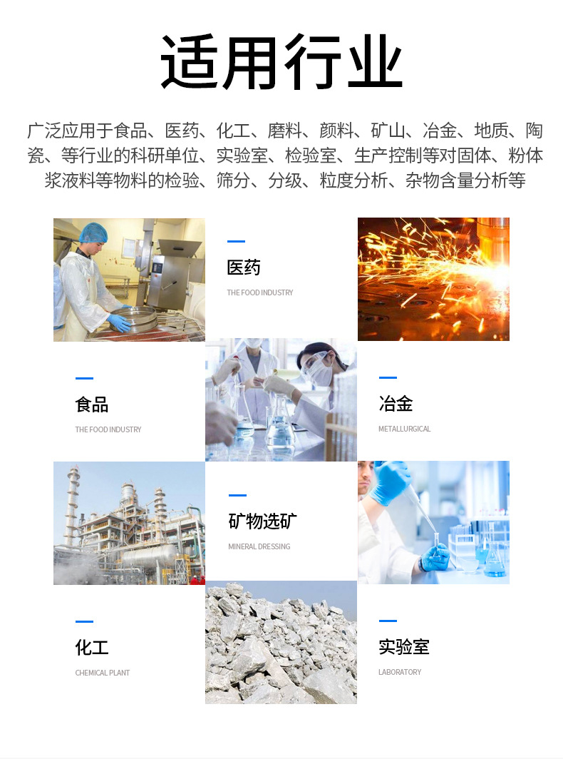 Product introduction檢驗篩又稱標準篩、檢驗分析篩、實驗篩等,是一種專門檢驗物料粒度的一種篩分設備。