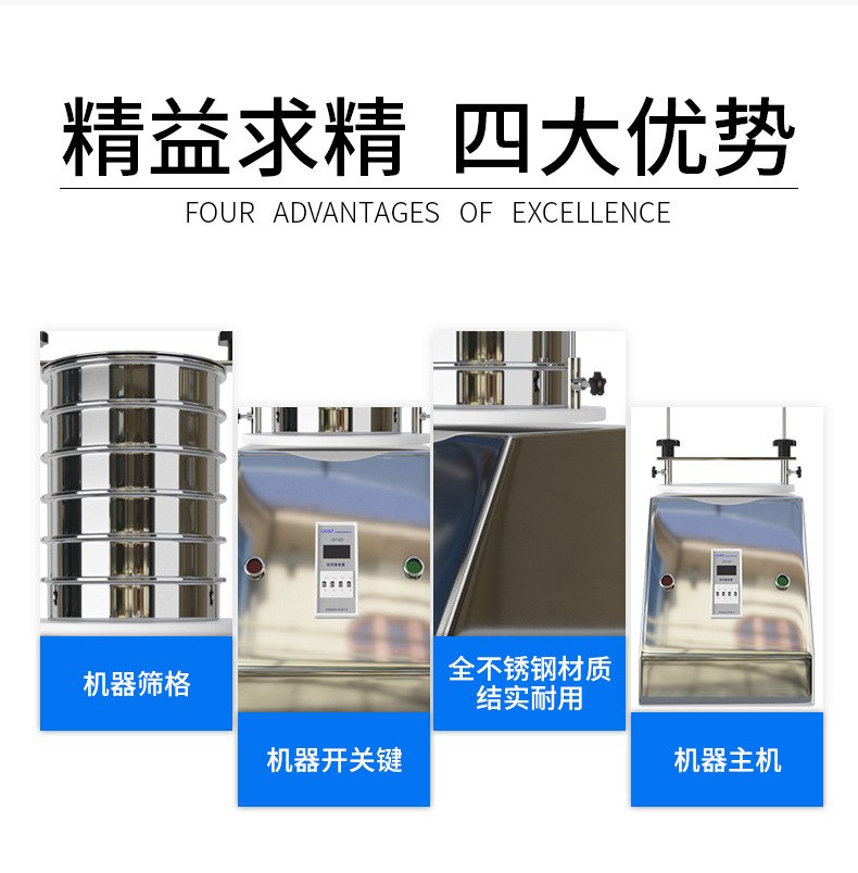 Product introduction檢驗(yàn)篩常用在實(shí)驗(yàn)室、質(zhì)檢室等檢驗(yàn)部門(mén)進(jìn)行顆粒、粉狀類(lèi)物料粒度分布測(cè)定,以及雜質(zhì)含量、液體固形物含量的測(cè)定分析。檢驗(yàn)篩的篩機(jī)和篩框都有一定的標(biāo)準(zhǔn),常說(shuō)的試驗(yàn)篩、分樣篩、分析篩、藥典篩就是它。