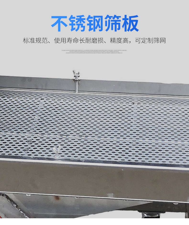 Product introduction直線振動篩適用于各種顆粒狀、粉狀物料的分級與除雜,可以將物料一次性篩分五個層次,可以篩分325目,直線振動篩有多種型號,我司根據您的需求定制適合的振動篩分機。