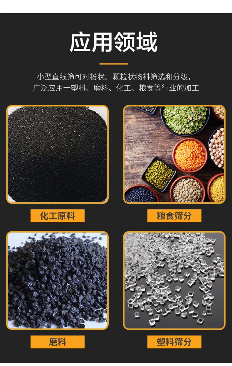 Product introduction直線振動篩又稱輕型直線篩,可篩分粉狀、顆粒狀物料,也可篩分液體物料,篩分可達到325目。