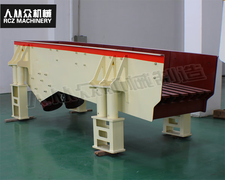 ZSW振動給料機主要由振動機架、彈簧、振動器、電機振動架及電機等組成。激振器個是由二特定位置的偏心軸以齒輪相嚙合組成,裝配時必須使兩齒輪按標記相嚙合,通過電機驅動,使兩偏心軸旋轉,從而產生巨大合成的直線激振力,使機體在支承彈簧上作強制振動,物料則以此振動為動力,在料槽上作滑動及拋擲運動,從而使物料前移而達到給料目的。當物料通過槽體上的篩條時,較小的料可通過篩條間隙而落下,可不經過下道的破碎工序,起了篩分的效果,提高了工作效率。