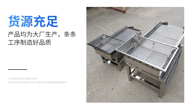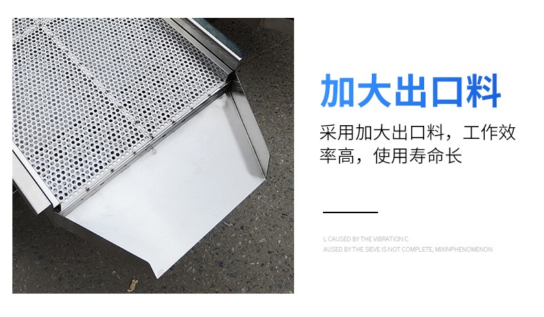 多層粉料直線振動篩為雙振動電機驅動,利用振動電機激振的原理工作。當兩臺電機作同步、反向旋轉時,其偏心塊所產生的振動力在平行于電機軸線的方向相互抵消,在振動力和物料自重力的聯合作用下,使物料在篩面上被拋起跳躍式向前作直線運動,以合理匹配篩網達到篩分的目的。