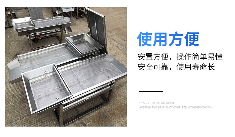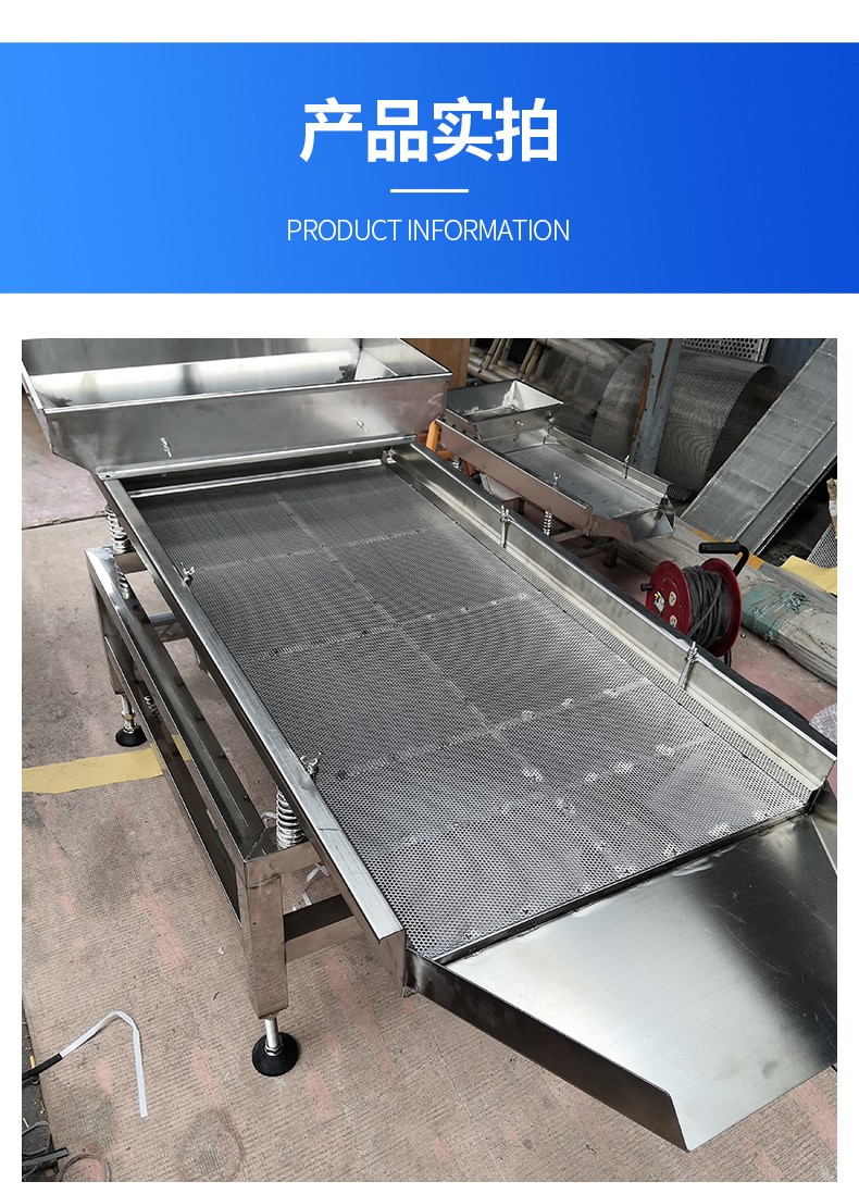 直線振動篩是雙振動電機驅動,利用振動電機激振的原理。該產品篩分精度高、處理量大、結構簡單、密封性好、維修方便、可用于流水線生產中的自動化作業。適用于粒度0.74-10mm,含水小于7%,無粘性物料的任何干式物料的篩分。廣泛應用于磨料磨具原料、化工、塑料、醫藥、樹脂粉、陶瓷原料、冶金、建材、糧食、食品、化肥等行業中的干式粉狀、細顆粒狀或細微粉物料的篩分。