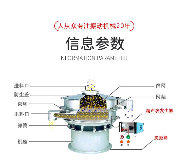 7.金屬粉末篩分機強動力:本公司設計制造的粉末顆粒旋振篩采用通用YZUL系列新型動力激振器,三維動力突出,處理物料產量高、精度細;